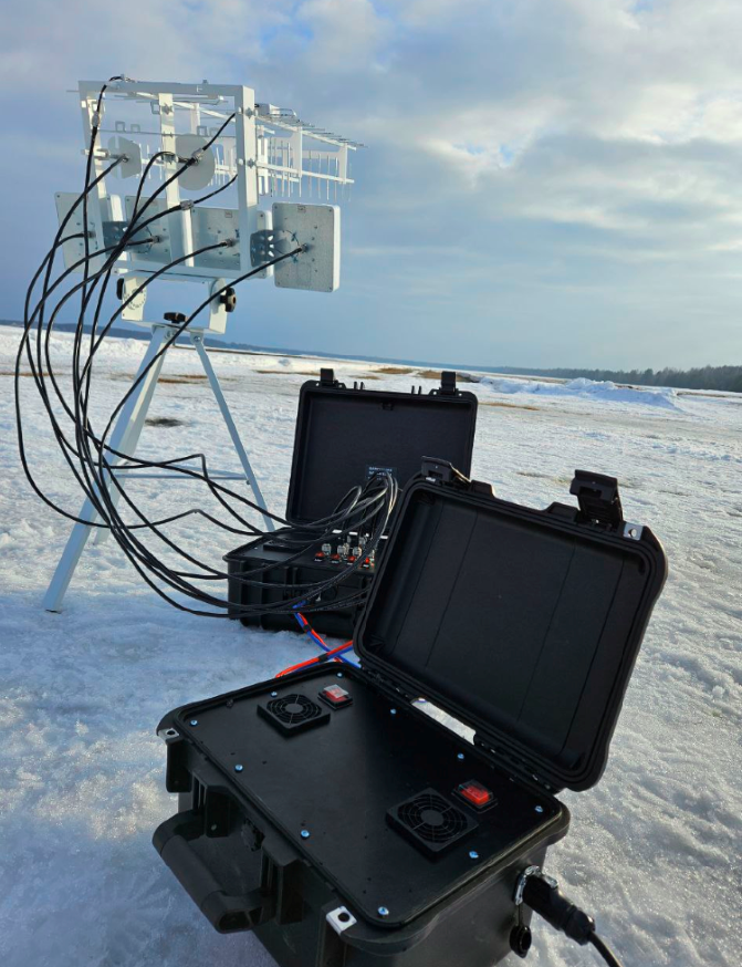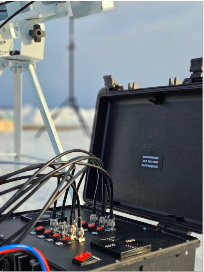 Блокиратор Дронов «Барьер», изделие выполнено в виде треноги на который устанавливаются антенны. В составе имеются направленные, панельные антенны, с высоким коэффициентом усиления, встроены 7 независимо управляемых радиочастотных рабочих усилителя, имеется дублирование поляризации как на направленных, так и на панельных антеннах (для частоты 900, 2400) общей мощностью 300 W. Есть возможность выбора каждого канала индивидуально или включить все сразу. Каналы блокировки 433, 900, 1.2, 1.5, 2.4, 5.2, 5.8 в полосе частот БПЛА.