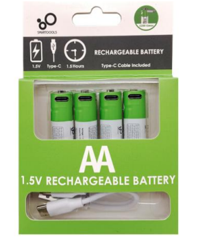 Надежные аккумуляторные батарейки 1.5в АА (пальчиковые) с разъемом USB. Заряжаются от обычной зарядки смартфона Type-C.