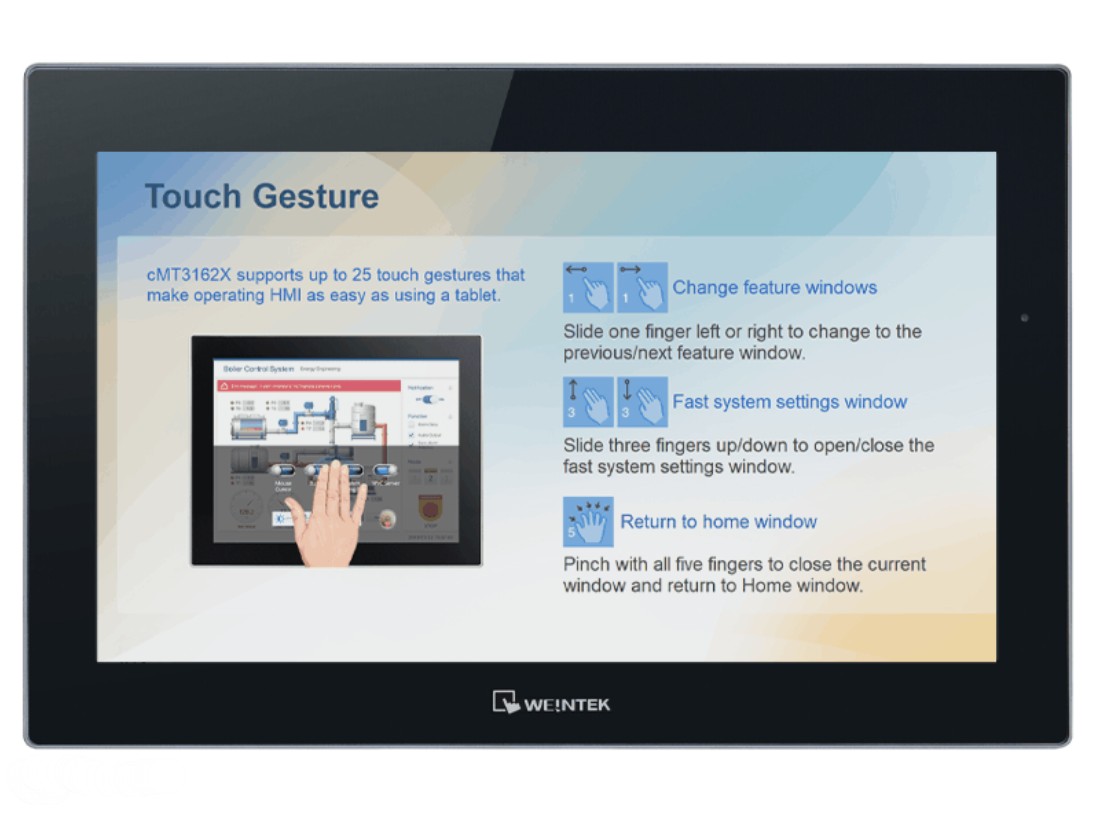 Cенсорная панель cMT3161X Weintek 15.6”, IPS, 16.2M цветов, 1920x1080, 32-битный RISC 1,6ГГц процессор, встроенной памяти 1Гб ОЗУ и 4Гб flash, часы реального времени. Разъем А: COM1: RS-485 2w/4w, COM3: RS-485 2w; Разъем B: COM1: RS-232 4w, COM3: RS-232 2w, 1 Ethernet порт (10/100 Base-T), USB 2.0 (Host), аудио выход, светодиодная подсветка матрицы 30,000 часов работы