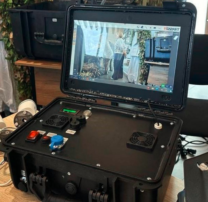 Комплекс представлен в виде портативного влагозащищенного противоударного кейса с большим монитором 27 дюймов, 10 камер наружного видеонаблюдения и комплекта проводов. Время автономной работы до 15 часов (в комплект входят резервная АКБ и блок питания) с питанием от сети - без ограничений.